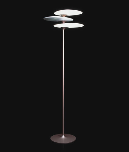 Diese in 2011 mit verschiedenen Designpreisen ausgezeichnete LED Stehleuchte ist energiesparsam und hat einen maximalen Verbrauch von 28 Watt. Die an die Natur angelehnte Formgebung kommt in der Farbe zurück: Sandy Beach Metallic.